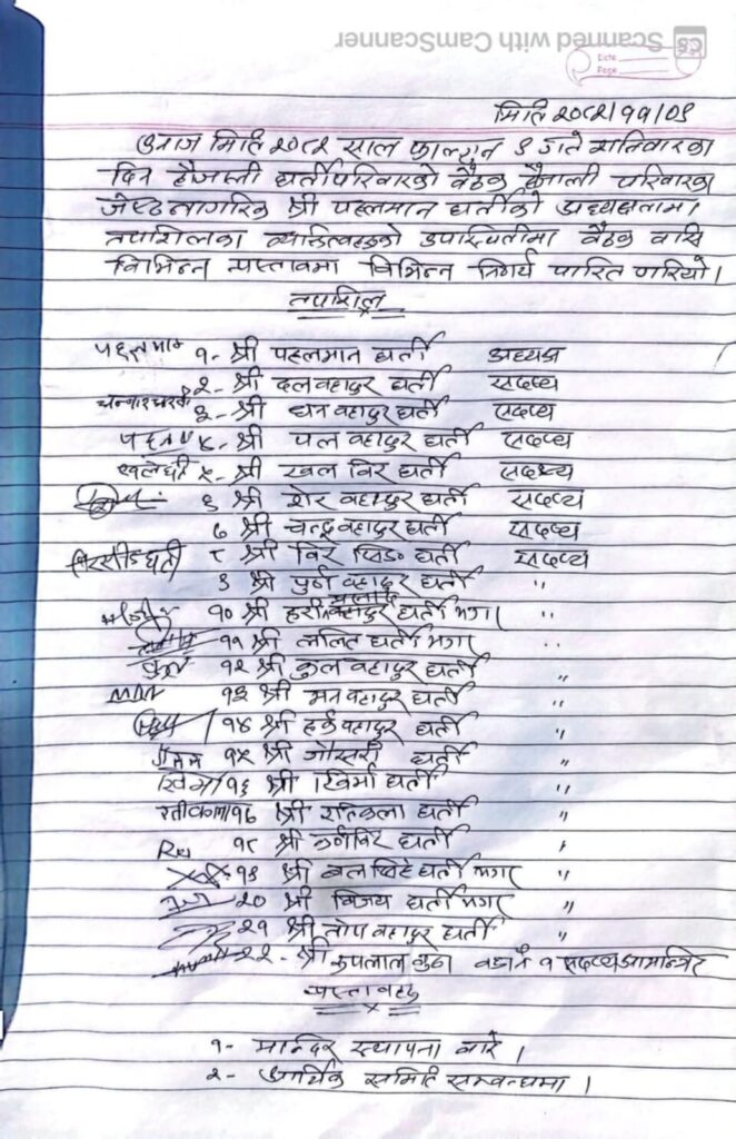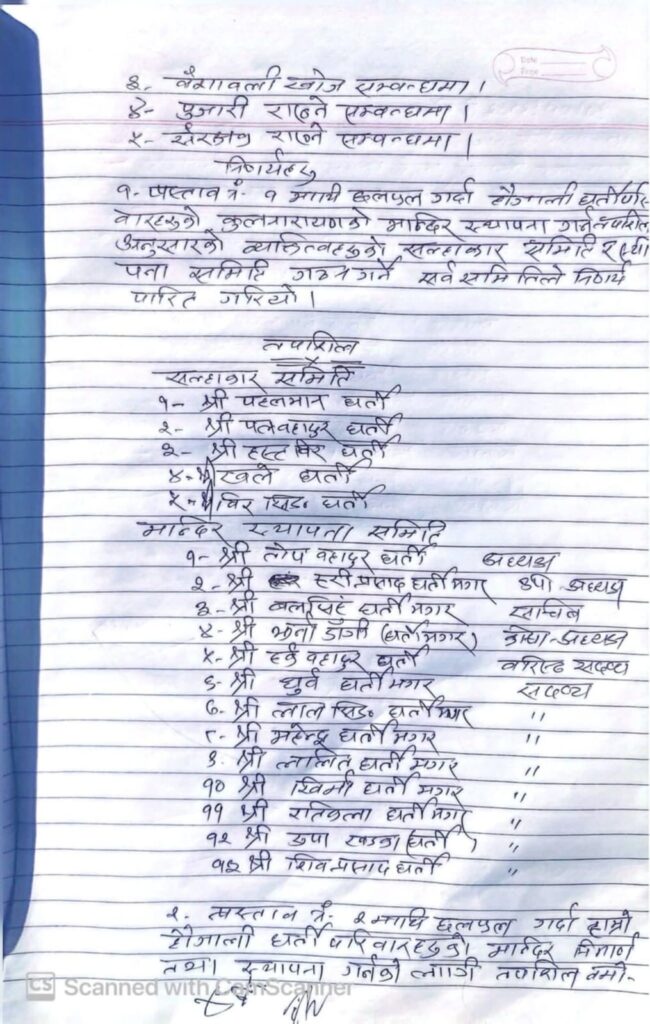 केही दिनअघि सम्पन्न पारिवारिक बैठकले मन्दिर निर्माणलाई व्यवस्थित रूपमा अघि बढाउन विभिन्न समिति गठन गरेको हो।